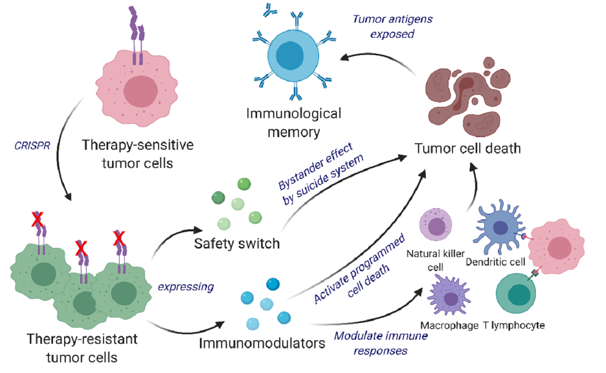 To eliminate the possibility of unwanted secondary tumor initiation, we implemented a dual safety switch comprising of rapamycin-activated caspase 9 (RapaCasp9) (early activation and killing) and herpes simplex virus-1 thymidine kinase (HSV-TK) (late activation and killing) in our therapeutic tumor cells." - Khalid Shah, Vice Chairman Neurosurgery, Professor Harvard Medical School Founder and Director CSTI.