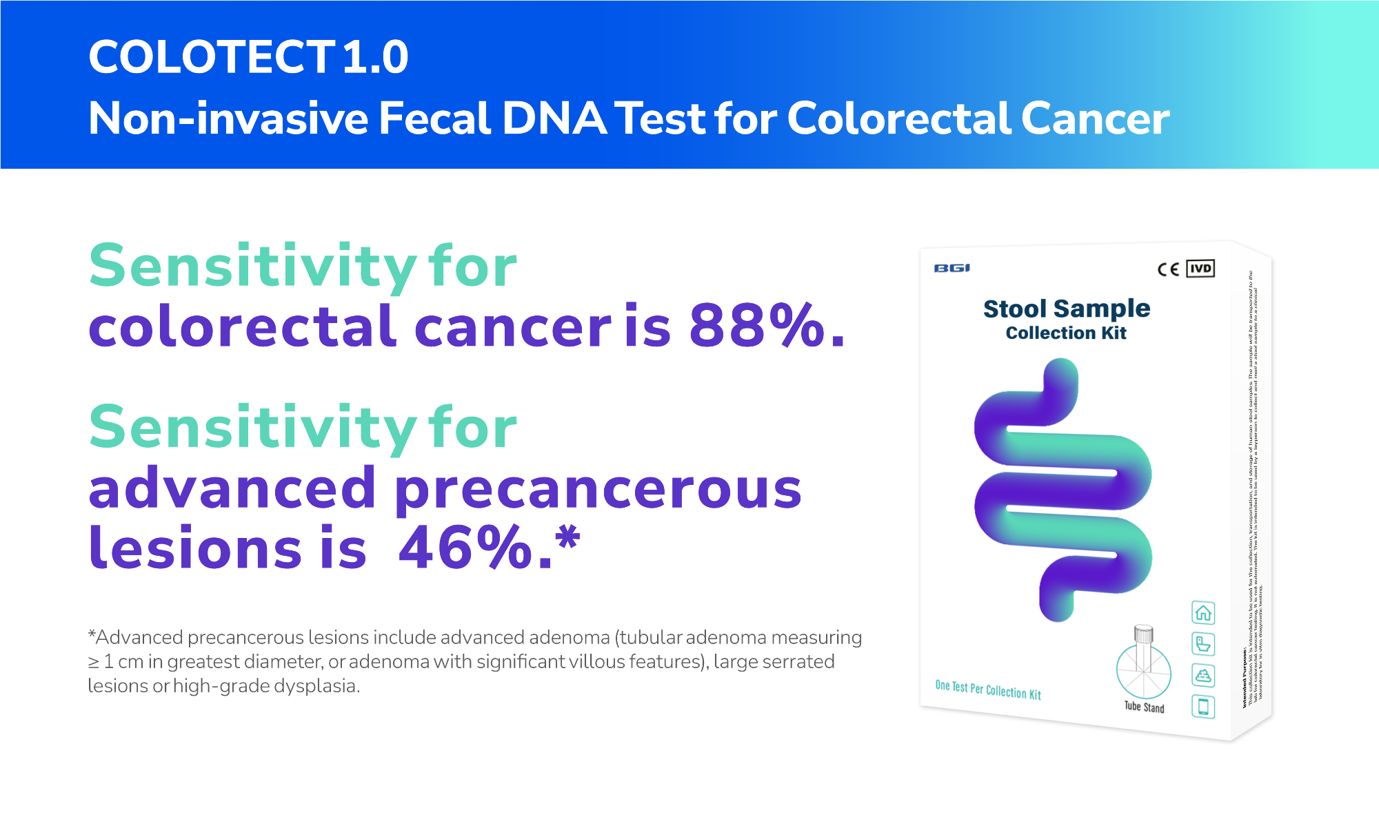 COLOTECT® 1.0 is a non-invasive fecal DNA test that utilizes multiplex methylation-specific PCR technology to trace abnormal DNA-methylation biomarkers in colorectal cancer from fecal samples.