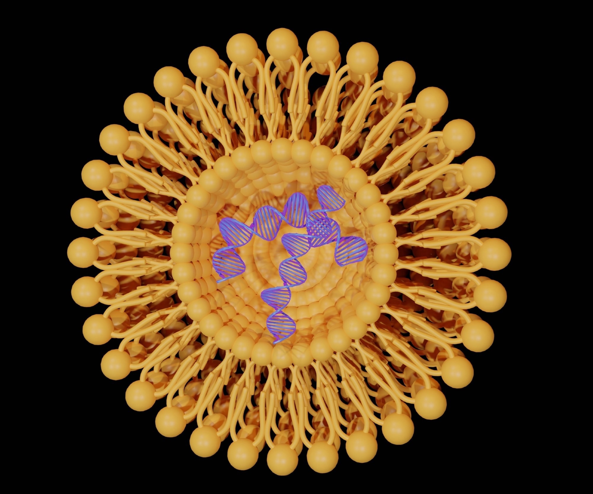 These nanoparticles are made up of several lipids, including an essential ionizable lipid, as well as helper lipids like DSPC and cholesterol, and PEGylated lipids. These components are mixed in ethanol with the cargo, which can be RNA or other types of drugs.