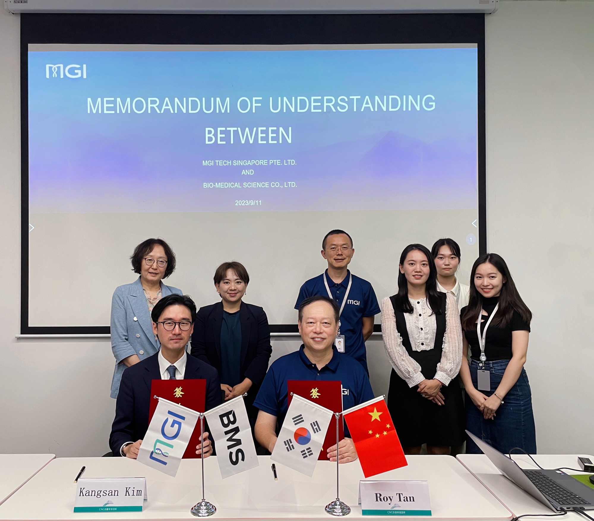 Cheonan, South Korea, 14 September 2023 – MGI, a company committed to building core tools and technology to lead life science, today announced MOU with Bio-Medical Science Co., Ltd. ("BMS") to expand genomics solutions in South Korea by leveraging MGI's cutting-edge technology. The MOU is expected to reach collaborations in localizing MGI's manufacturing capability in selected genetic sequencers and reagents in South Korea via BMS, which will provide the market with state-of-the-art products that have been adapted to local needs, thereby helping advance genomic research and clinical diagnostics.