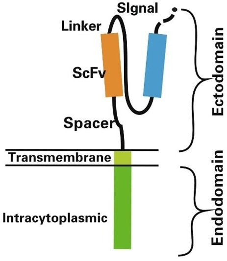 - Extracellular antigen-binding domain: The core targeting region, typically a single-chain variable fragment (scFv), designed to recognize specific tumor-associated antigens with high specificity.