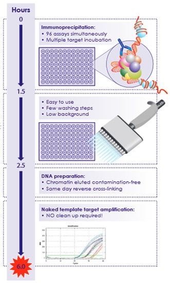Figure 1. Assay flow diagram. 96 ChIP Assays in 6 hours.