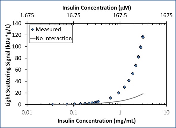 Adapted with permission from “Self-Association of Insulin Quantified by CG-MALS”, kindly submitted to Wyatt Technology Corp. by V. Pandyarajan et al., Department of Biochemistry, Case Western Reserve University. Graphs and illustrations reprinted with permission from Wyatt Technology.