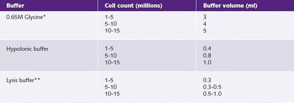 During chromatin preparation, the amount of lysis buffer used is an important factor. Excess lysis buffer will mean an excess of detergent, which may have an inhibitory effect on antibody binding and downstream analysis. This would also give rise to a less concentrated chromatin preparation. Chromatrap® kits include optimized amounts of lysis buffer that can be used based on starting cell number (Table 2).