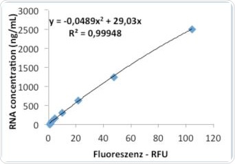 The Eppendorf BioSpectrometer fluorescence is compatible with the RNA detection kits from Life Technologies and Promega. Based on the sample analyses conducted on the Life Technologies kit, it may be concluded that standard curve can be produced by both quadratic and linear regression. In case of the Promega RNA kit, the analysis results of the linear regression or the standard curve exhibited substantial deviation from the nominal value.