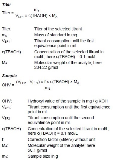 - Application Bulletin AB-322 Fully automated potentiometric determination of the hydroxyl number (HN) according to ASTM E1899 and EN ISO 4629-2