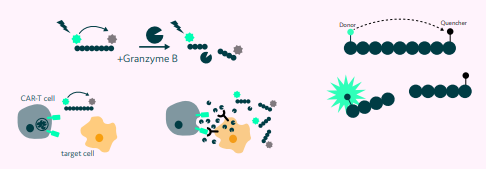 Cytotoxic Lymphocytes secrete Granzyme B and Perforin when encountering a target cell instigating apoptotic cell death. A fluorogenic substrate (SensoLyte® Granzyme B Activity Assay Kit (Anaspec Inc.)) was utilized to detect the Granzyme B released by the CAR-T cells.