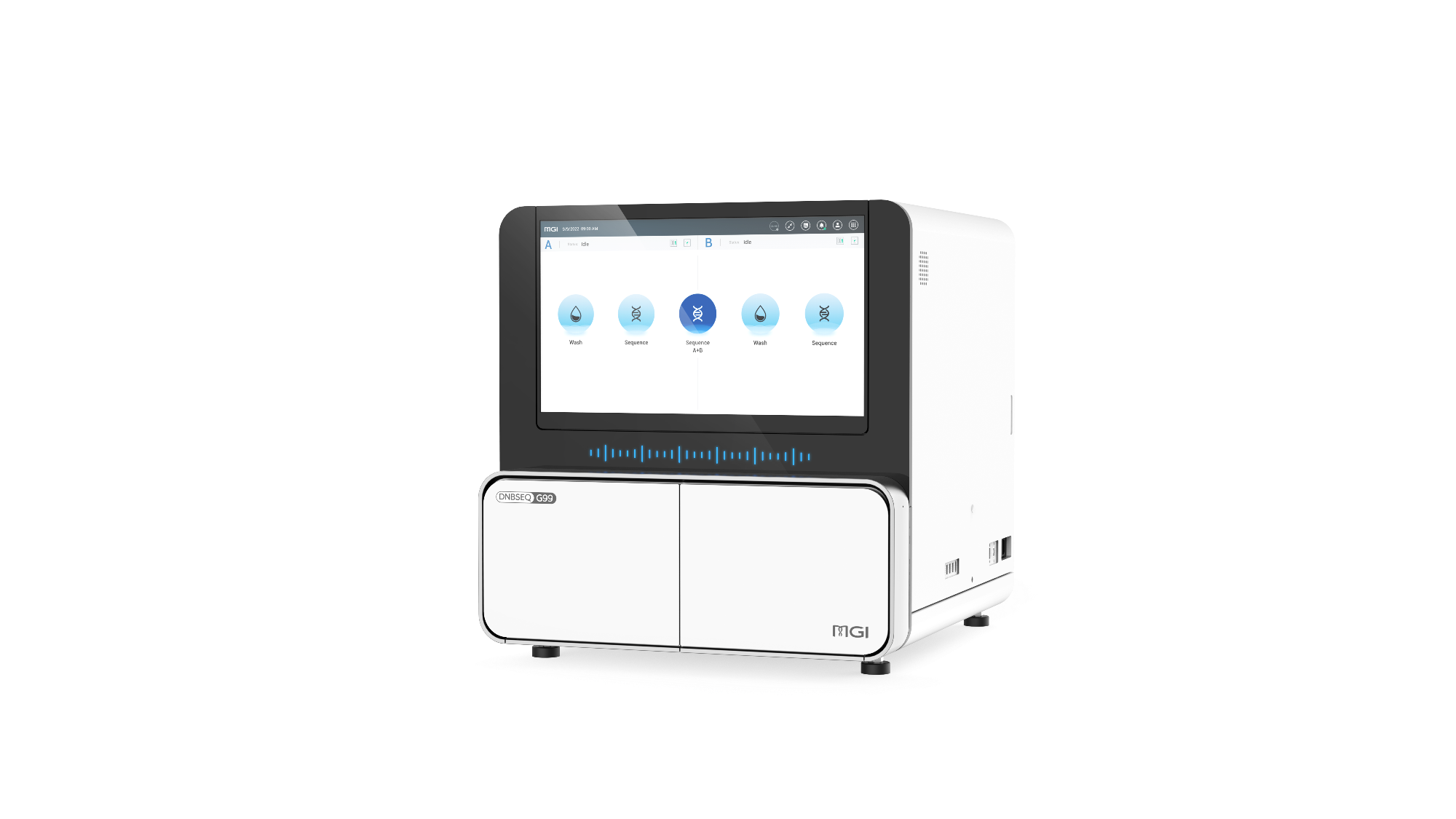 DNBSEQ-G99, offers mid- to low-throughput assays at an ultra-high speed, perfect for targeting specific gene sequences and for small genome sequencing. With a triangular matrix of single spots on the sequencing flow cell and highly precise temperature control, the DNBSEQ-G99 platform gives a greater data output density in a shorter time with an overall throughput of 8-48 Gb per run.