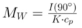 If reorganized for single angle analysis at 90° and solving for weight-averaged molecular weight, the equation changes to: