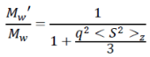 In equation 1, q refers to the typical scattering wave-vector amplitude, q=(4πn/λο)sin(θ/2), where n denotes the solvent index of refraction, λο represents the vacuum wavelength of the incident light, dn/dc refers to the differential refractive index for the polymer in the selected solvent, A2 refers to the second virial coefficient (also known as B22), and <S2>z represents the mean square radius of gyration. K is an optical constant for vertically polarized incident light.