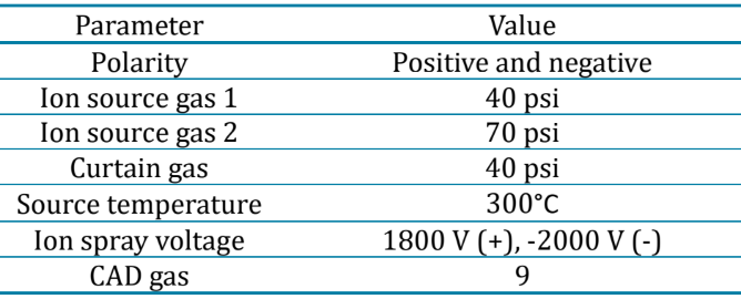 Table 2. Source and gas parameters. Source: SCIEX